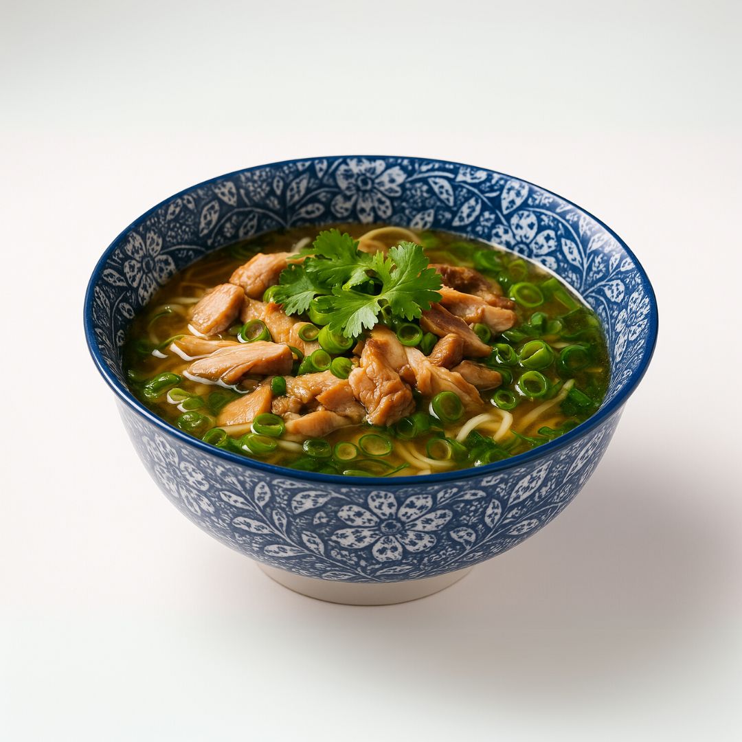 Vietnamese rice noodle soup served with tender chicken fillets and fresh herbs